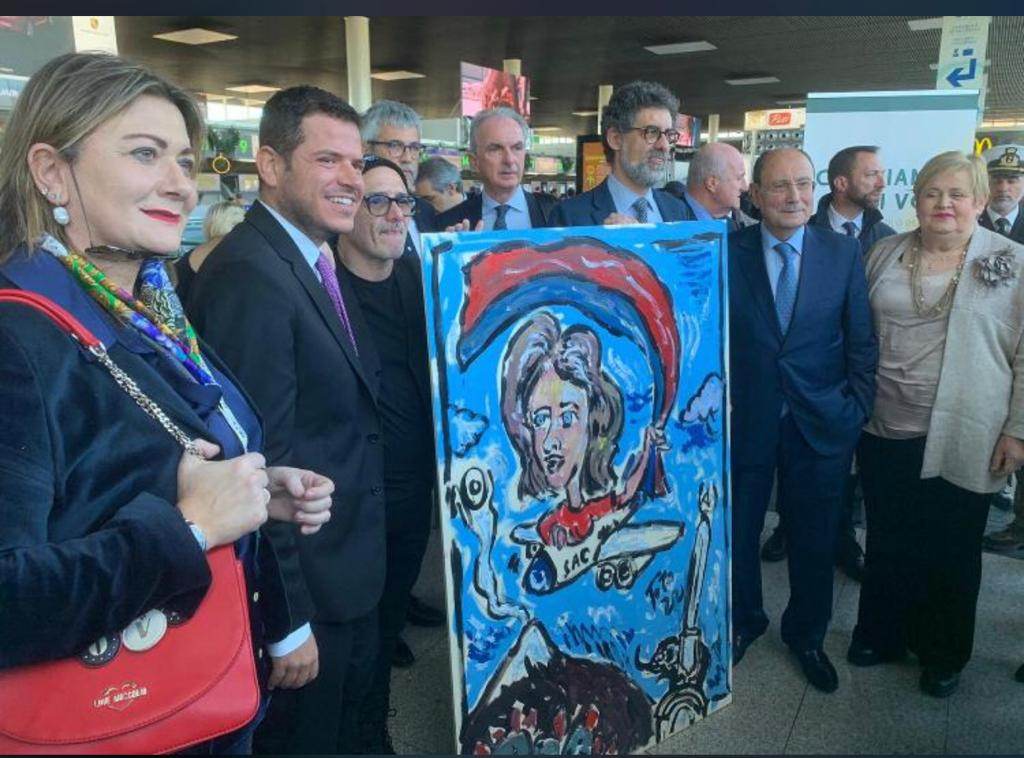 Nell’area antistante i banchi check-in della compagnia ITA Airways è stato premiato il diecimilionesimo passeggero del 2022: la signora Isabella, residente a Rosolini, che ha ricevuto un biglietto omaggio dall’amministratore delegato della compagnia aerea, Fabio Lazzerini, dalla presidente della SAC, Giovanna Candura e dall’amministratore delegato Nico Torrisi. Nel frattempo, l’artista Totò Calì realizzava un simbolico ritratto del fortunato viaggiatore che verrà esposto nello scalo a ricordo dell’evento.